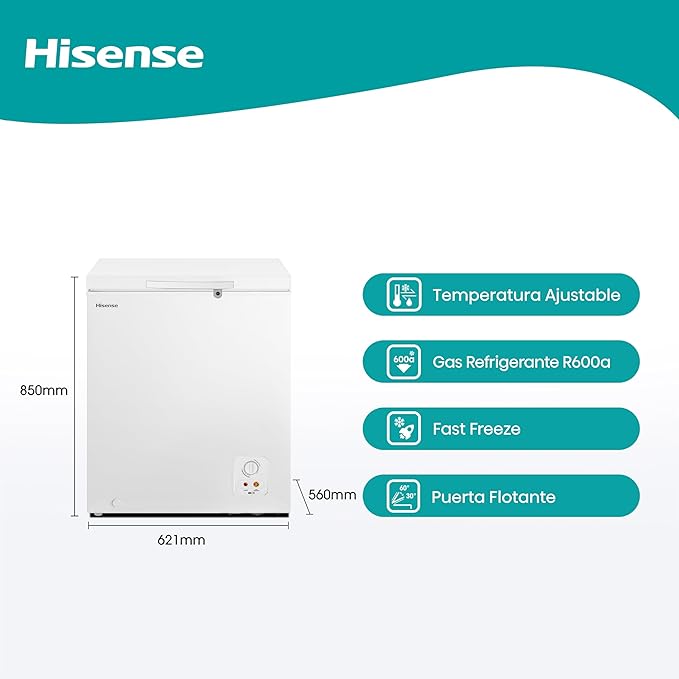 El congelador de 5 pies Hisense te brinda Función Dual que permite utilizarlo como congelador o refrigerador, botón de rápido congelamiento y manija de seguridad. Cuenta con una capacidad de almacenaje de 142 litros.